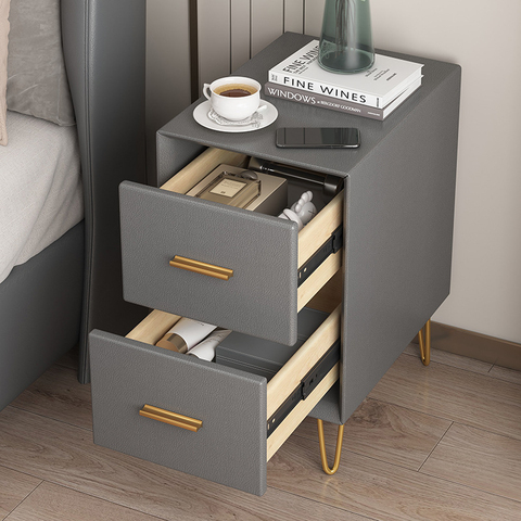 Mesita de noche ligera de lujo, armario de almacenamiento pequeño de cuero ins para dormitorio, económico, para el hogar